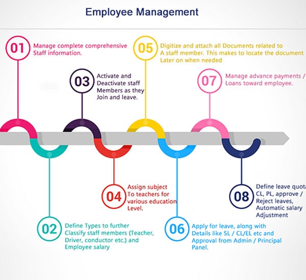 The use of software for managing employees provides time-saving benefits while increasing transparency between staff members and school administrators. The system uses biometric and RFID technology to authenticate attendance records. EduStrings ERP provide multiple feature for managing employee day to day information.