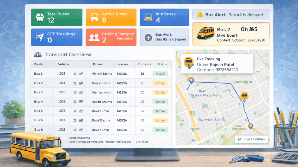- Support for RFID and GPS for automatic transport tracking and attendance